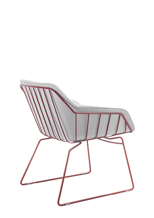 La parte superiore della seduta è realizzata in tondino di acciaio di due diametri mentre la parte inferiore, che costituisce il supporto, può essere realizzata in diversi materiali e diverse tipologie: quattro gambe, slitta, base centrale e girevole, tubo di acciaio, tondino.